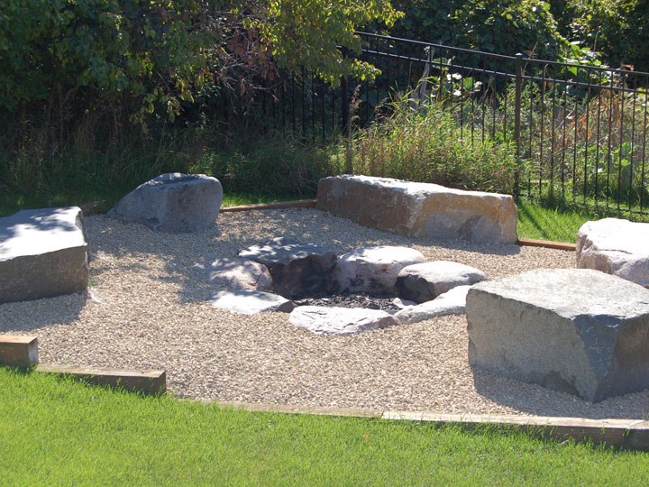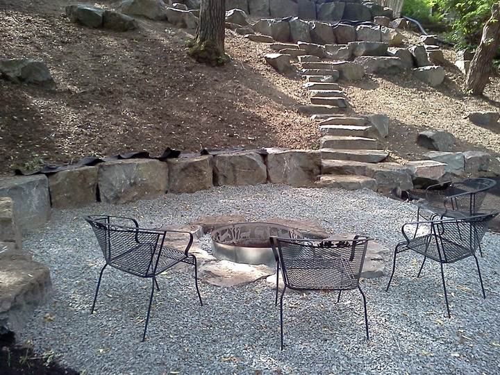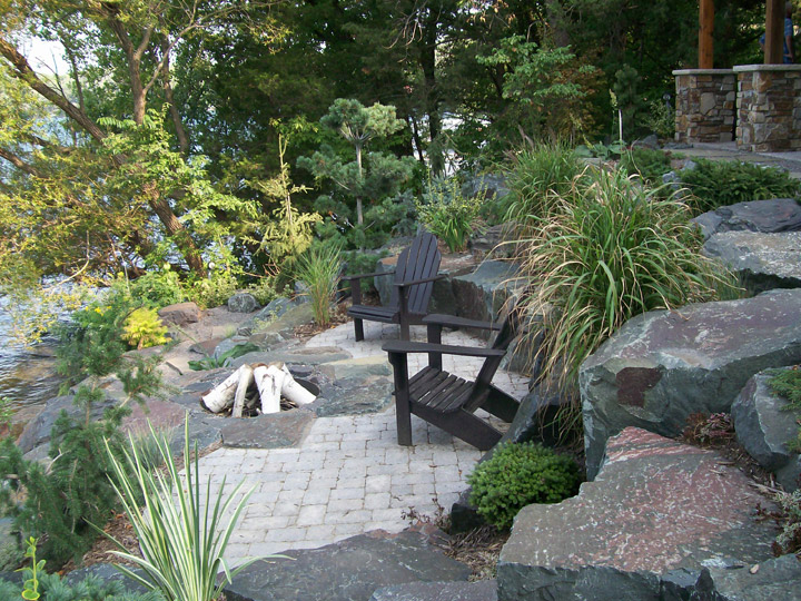 One of life’s simple pleasures is for family and friends to gather around a crackling camp fire to watch the flames dance over the red hot ambers, hear the pop and hiss of the wood, roast a few marshmallows and depending on the season spin those fishing and ghost stories like a pro. The real beauty about introducing a campfire ring that is nicely surrounded by large flat sitting rocks within your outdoor living environment is that there is not any other landscape feature you can have installed that will become your favorite gathering spot for people of all ages.
