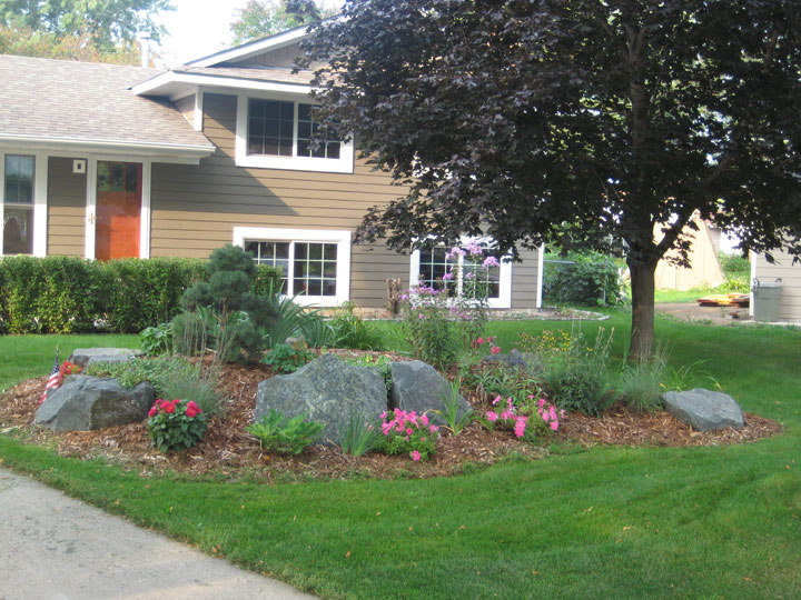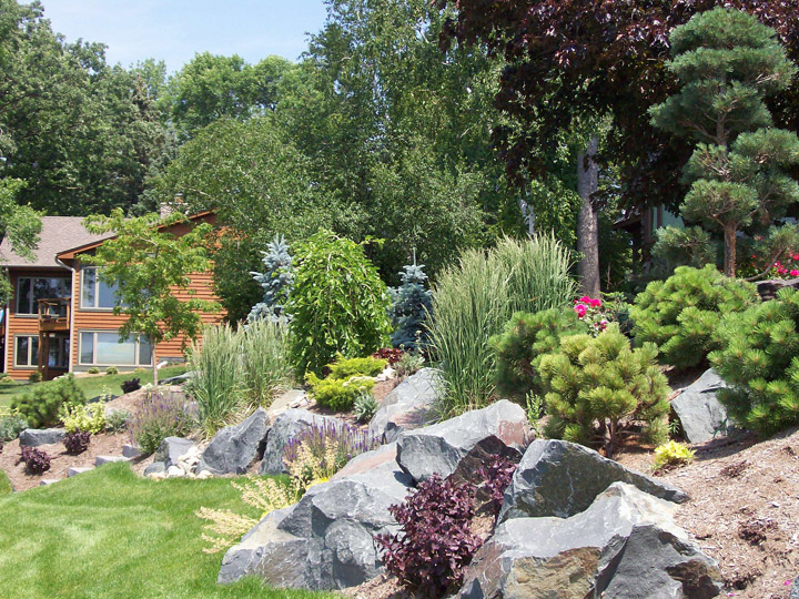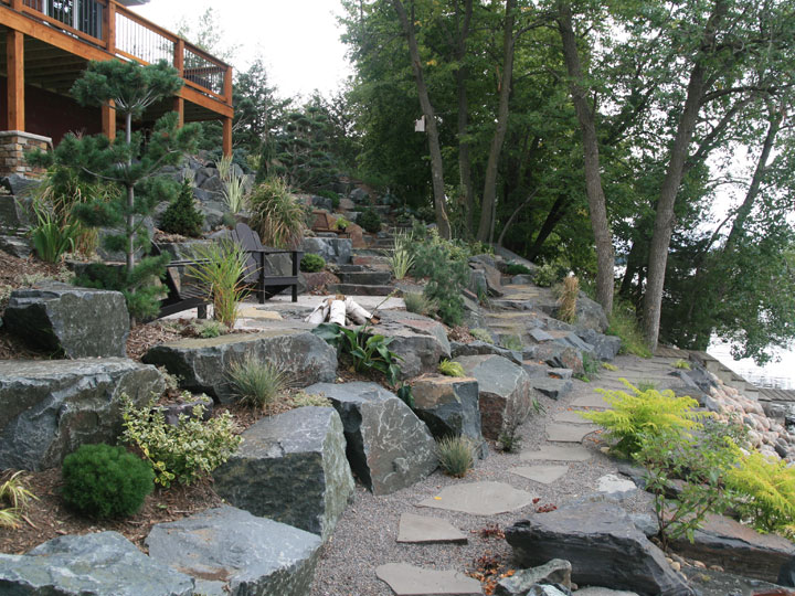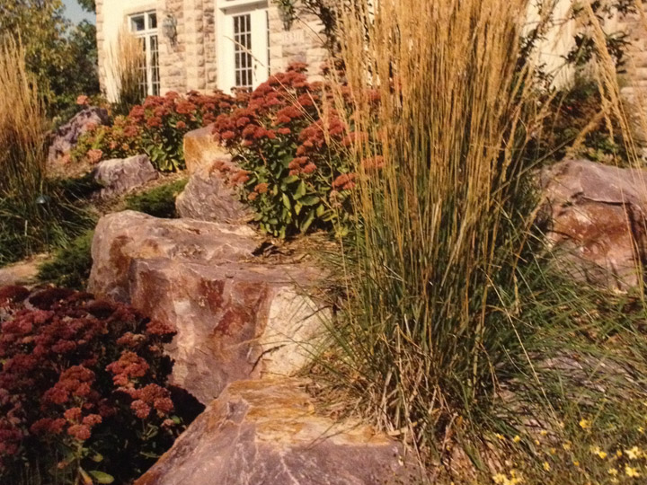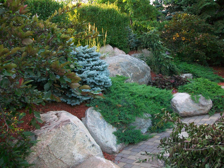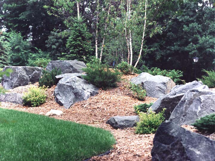 When installed by Boulder Express, the boulder outcroppings are inspired by the best of Mother Nature’s own workmanship but also a level of functionality is also accomplished as well. Natural boulder settings will provide year round color, texture, protected coves for your more delicate ground covers and even an interactive element like bird bath rocks and sitting rocks will make this area soon to be your favorite part of your home.